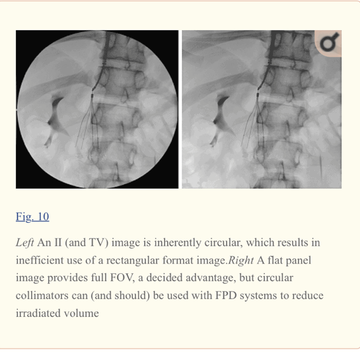 FPD’s use less radiation dose than an Image intensifier. The Mag 3 setting on an image intensifier uses 5x the radiation dose to produce a magnified image. The FPD’s size is much smaller which gives surgeons 40% more room to work on the body part and makes the c-arm easier to fit in smaller places.